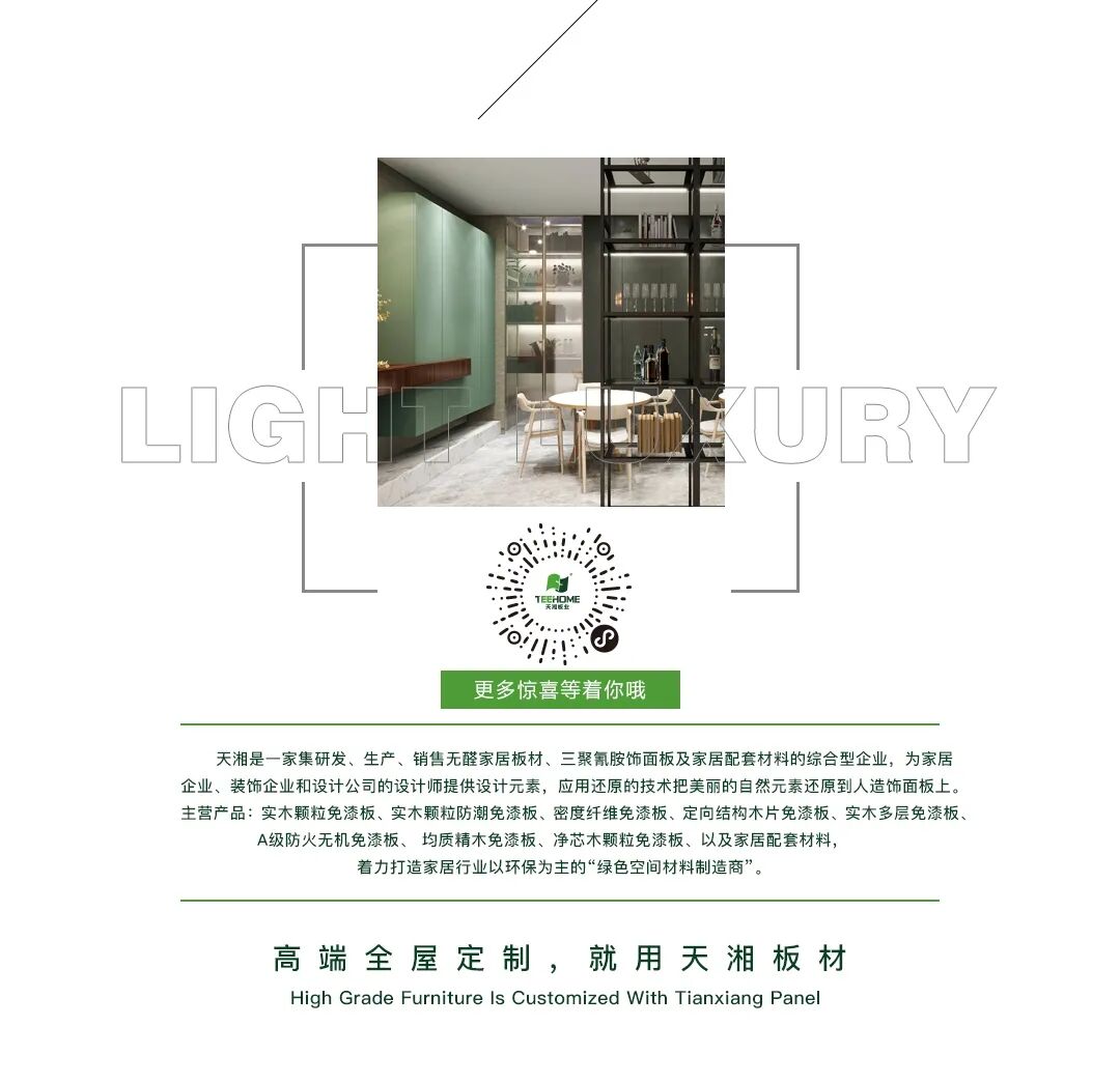 天湘板业受邀入驻A区6.1馆158展位;我们以“为设计提供美学元素”为主题携创新研发成果高调亮相,诚邀您莅临观展品鉴,共同见证天湘板材的智造魅力与人文魅力。
