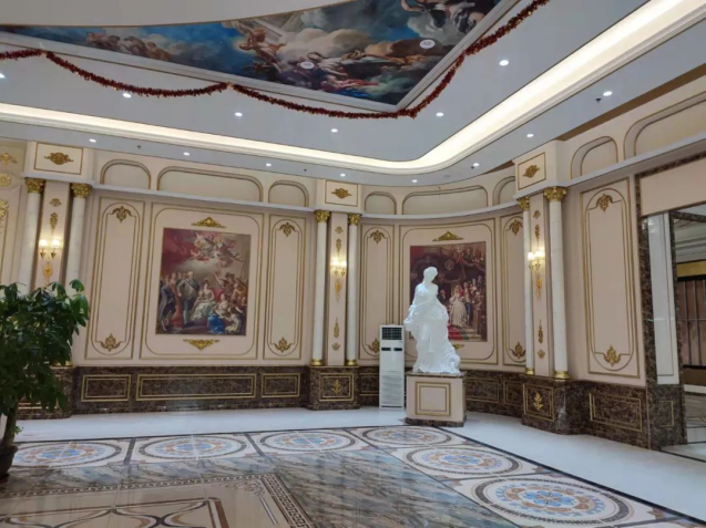 一进门,旋即被经典巴洛克式风采的大堂吸引,仿佛置身一座华丽浪漫,富丽堂皇的宫殿。在这里,大家不仅能看到店内的各式风格样板间展示、装饰艺术展示,不仅带来美的视觉享受,是个拍照绝佳背景墙,还能亲身感受板材巧妙应用设计于室内创造的美好空间体验,寓教于乐。