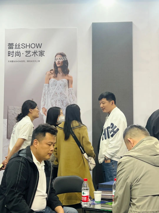 在此次的展会暨招商会上,天湘板业带来开创性精品新品华北大秀,趋势系列和高定系列品质与颜值并存,全程都是焦点,让参会嘉宾体验高定板材饰面之美的同时,享受时尚秀场视觉盛宴,聚集了极为火爆的人气。