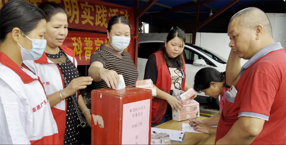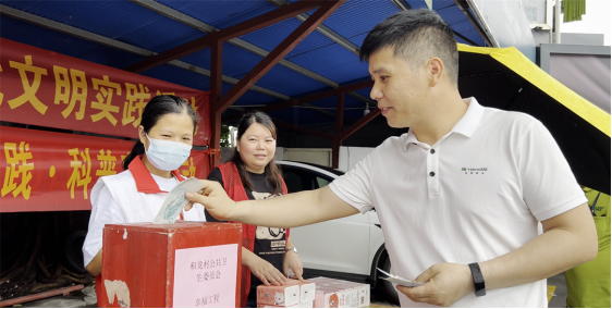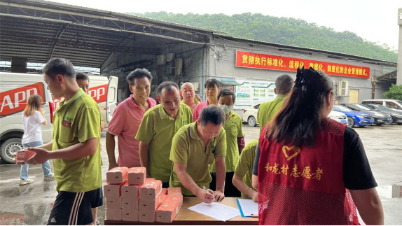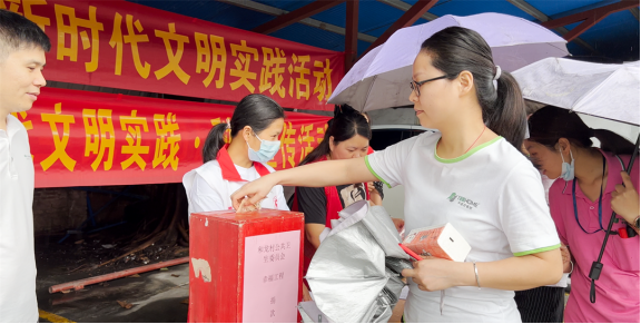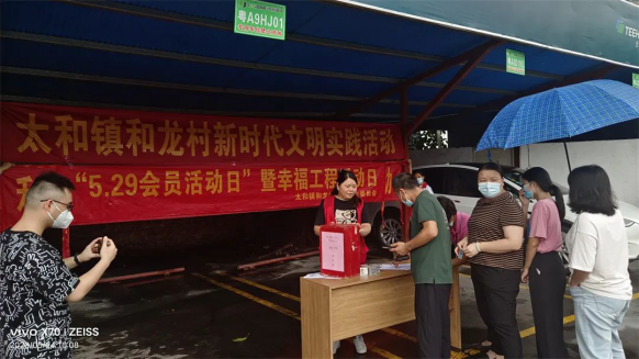 细雨绵绵挡不住大伙儿捐献爱心的热情,活动期间,和龙村公共卫生委员会还为每位捐款者准备了小礼品,提高广大职工的卫生健康意识,促进和谐友爱氛围的形成,受到在场群众一致好评。