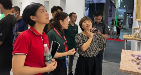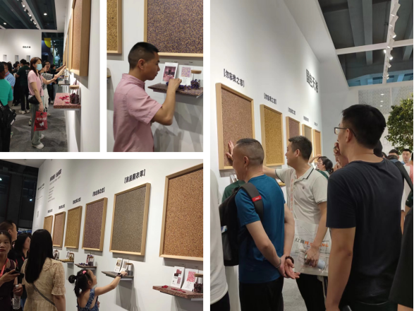 天湘板业鲜花板系列,以自然为源,凝结天地神采,不同性别、年龄、身份的观众均被鲜花板的魅力所折服,在现场闻、触、观察全方位近距离体验,并不舍拍照留念。