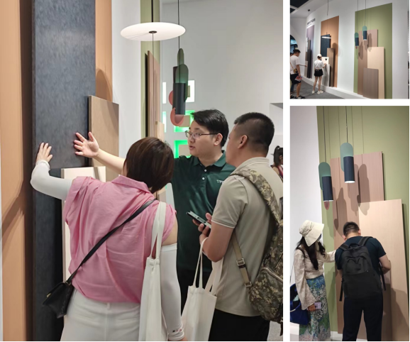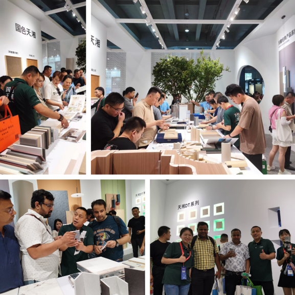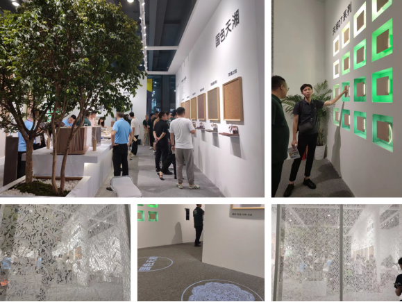 互动体验区带来天湘集团品类最全的样板展示、工艺造型、产品展示工具等等;参观者来到丰富的空间材料世界,与天湘精英热切交谈着工艺细节、合作细节、美学灵感等话题,乐此不疲,流连忘返!
