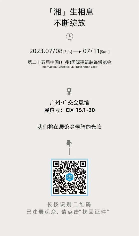 今日的广交会展馆生气勃勃,入场观众排起长龙,建博会的火爆人气一如既往。炙热的天气还是老样子,轻盈通透的“湘生相息”展馆(C区15.1-30)为现场观众带来阵阵夏日清凉,沉浸式产品艺术体验大SHOW开启现场人气焦点!