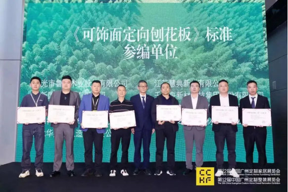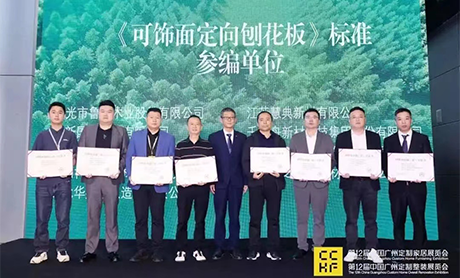 会议最后,中国木材与木制品流通协会板材分会副会长兼秘书长肖明为参与《可饰面定向刨花板》团体标准修订的单位颁发了参编证书。天湘板业作为可饰面定向刨花板参编单位之一获得参编证书。