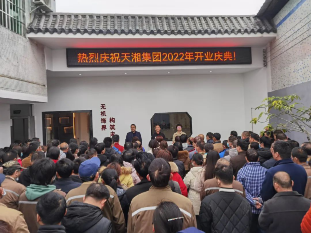 2022年2月10日,天湘集团新年正式开工,同时召开了新年员工庆典。天湘集团董事长刘总,研发中心负责人、原晶建材总经理刘总,天湘董事胡总,与及天湘家人全员参加了此次大会。