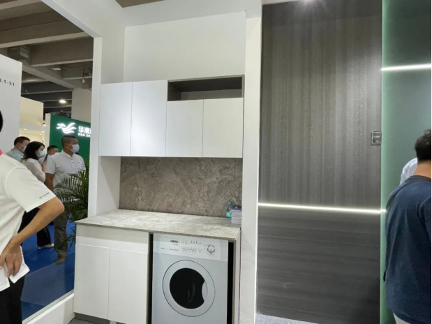 天湘板业展厅现场一度人流如织,天湘以以产品应用场景呈现的方式首次展出了阳台定制专用板。其中作为阳台定制版主要饰面的电子烤漆板引起了很大部分参观者的关注,折服于电子烤漆板在外表颜色美丽,婴儿般的舒适肤感之外具有十年不变色的超强耐候性,解决了阳台及户外空间材料的痛点。