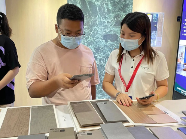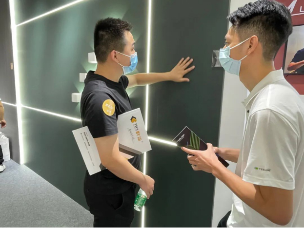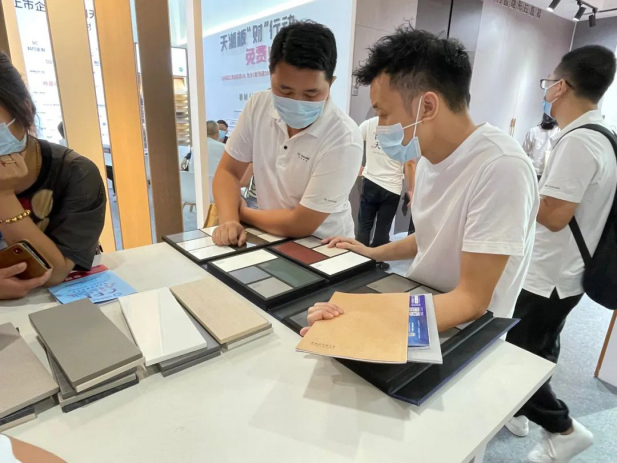 天湘板材凭借超高的颜值,优异的理化性能,原创的设计,先进的工艺在行业内继续驰骋飞扬,好板材需要细细品味,天湘团队做好每位参观者的向导者。