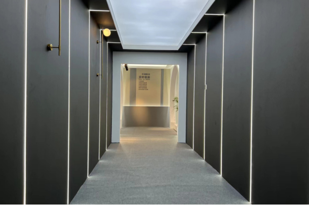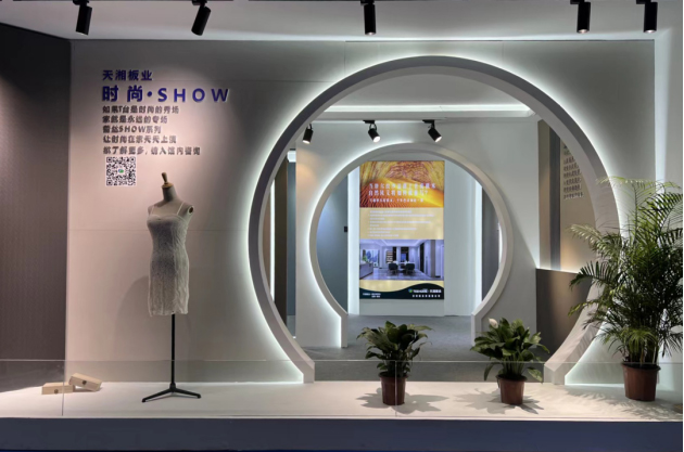 天湘展厅综合利用灯饰,橱窗,精美配件塑造轻奢温馨的空间氛围,利用光影、轮廓、触感,启发人们关于高定材料应用的无限可能。