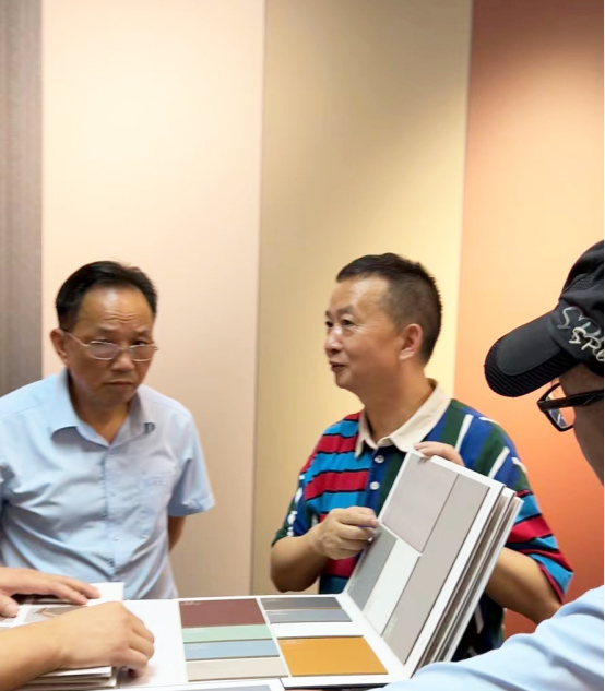 期间,签约仪式人员还一同参观了天湘总部展厅。天湘板业董事长刘承恒先生热情接待了湖南福湘集团周董及随行高管团队。