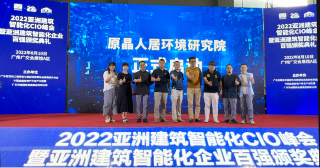 为推动空间建材技术发展,在2022亚洲建筑智能化CIO峰会暨建筑智能化百强企业颁奖典礼上,广东原晶空间建材有限公司联合国内知名设计师协会、设计机构和建筑/室内设计师举办原晶人居环境研究院筹建发布会。