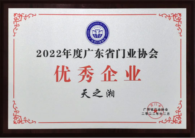 △天之湘获“2022年度广东省门业协会优秀企业”