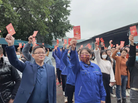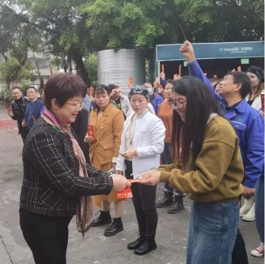 佛山工厂同时打响开门红,派发开工红包。