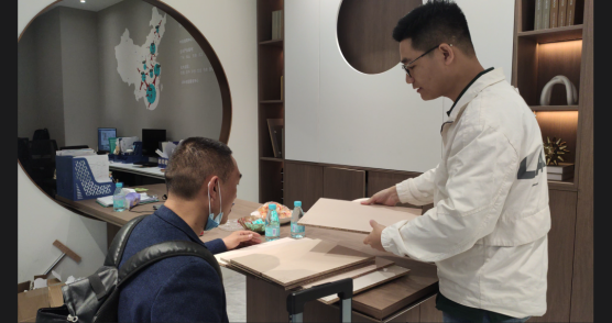 相比去年,我们的展厅再次升级,在这里你将看到最前沿的家居板材科技,最新的家居花色流行趋势,最全的轻高定家居材料集合。一起来现场领略最新板材黑科技吧,推一推,敲一敲,再闻一闻,选出你心中最佳。