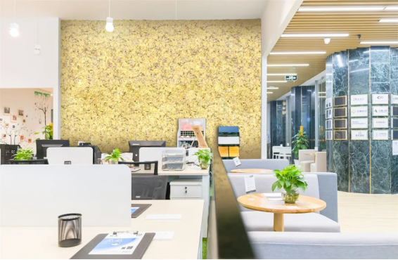 天湘鲜花板在装修办公空间时,将办公环境转变为一处生机盎然的环保空间,为员工带来舒适、愉悦的工作环境。