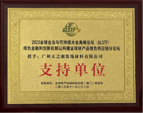 把握机遇,促进全球木业长期复苏,需要发展一个强大的全球网络,分享可持续木材生产和供应方面的知识和经验。木业论坛首次在澳门举办,为建立这一全球网络提供了重要平台。天湘板业积极支持木业网络建立,获得“绿色金融和创新机制以构建全球林产品绿色供应链分论坛 支持单位”。