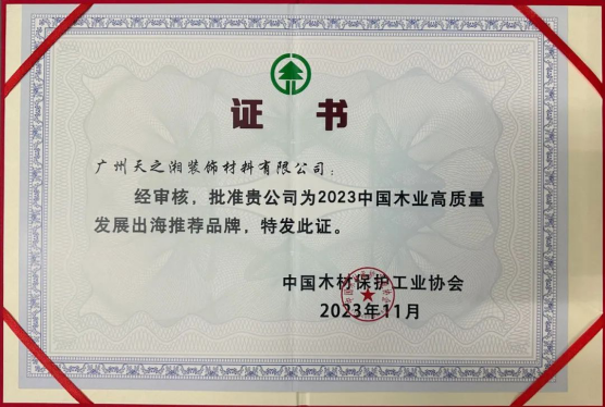 天湘集团通过参加此次大会,为公司的国际合作注入了新的动力。同时,天湘板业凭借强大的产品实力,在以“共享长青产业 领创绿色未来”为主题的木材加工先进技术和机械装备分论坛荣获“2023中国木业高质量发展出海推荐品牌”。