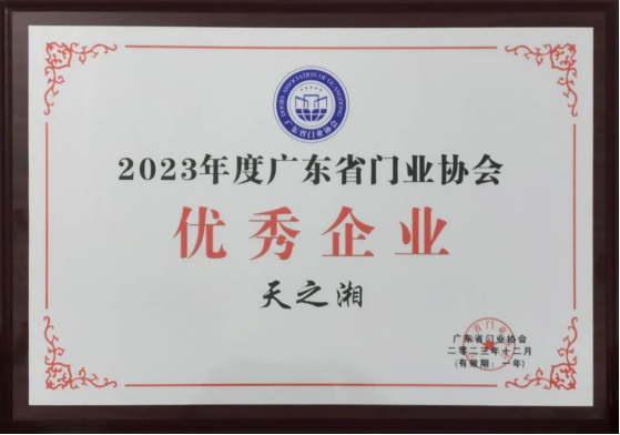 近日,以“门窗人,再度重相逢”为主题,2023年广东省门业协会年会暨门窗供应链博览会在佛山隆重举行。作为广东省门业协会会员单位,天湘板业应邀参加了此次盛会,并荣获了“2023广东省门业协会优秀企业”称号。