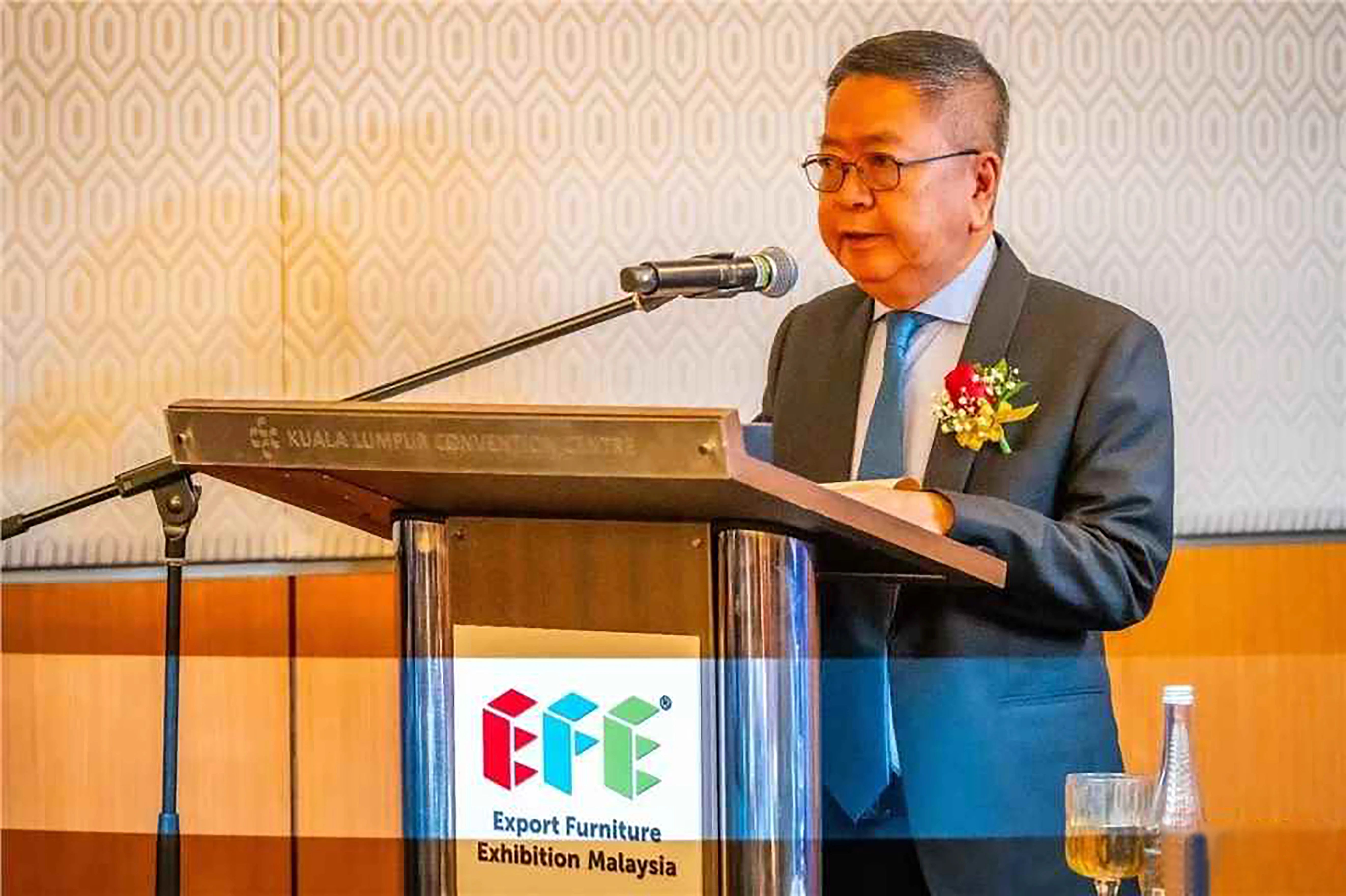 马来西亚家具总会陈文海会长致欢迎词,详细介绍了马来西亚家具出口的情况及对定制市场的预计和发展趋势,目前马来西亚定制市场缺乏有优势的供应链和管理生产系统需要中国企业的合作,提升马来西亚家具定制市场。