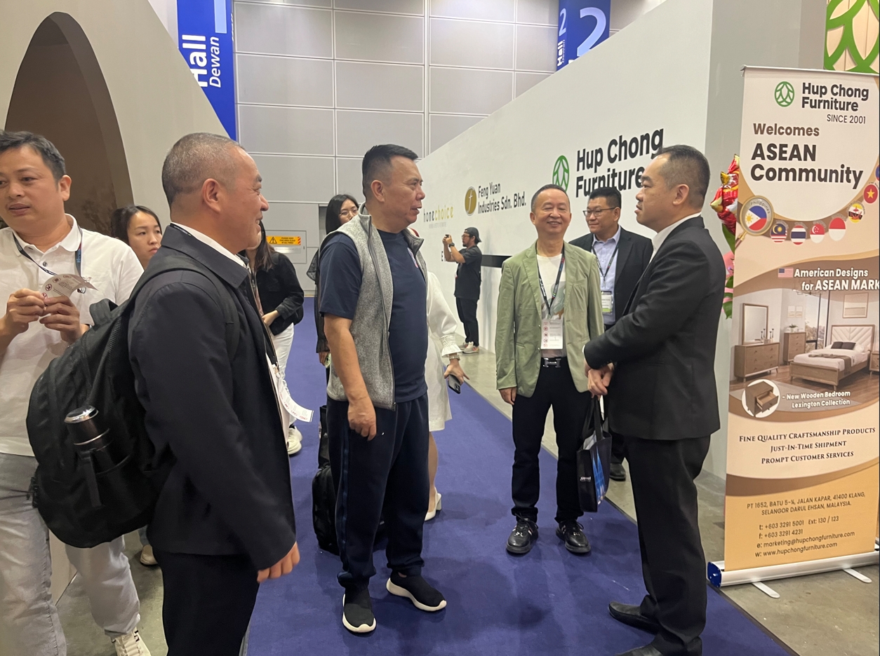 古有郑和下西洋,中国与马来西亚的交往从明朝汉丽宝公主和亲乃开启中马两国亲善并友好交往延续至今。中马协会友好往来近年更是紧密。3月5日,2024年马来西亚出口家具展EFE开幕。受马来西亚家具总会邀请,广东省门业协会组织行业领军企业广州天湘板业刘承恒董事长、广州诗尼曼家具辛福民董事长、广东库博五金潘晟董事长和老赖不赖赖世佑董事长等一行10人抵达吉隆坡,前往马来西亚出席开幕典礼及观展,并与马来西亚家具总会进行交流。
